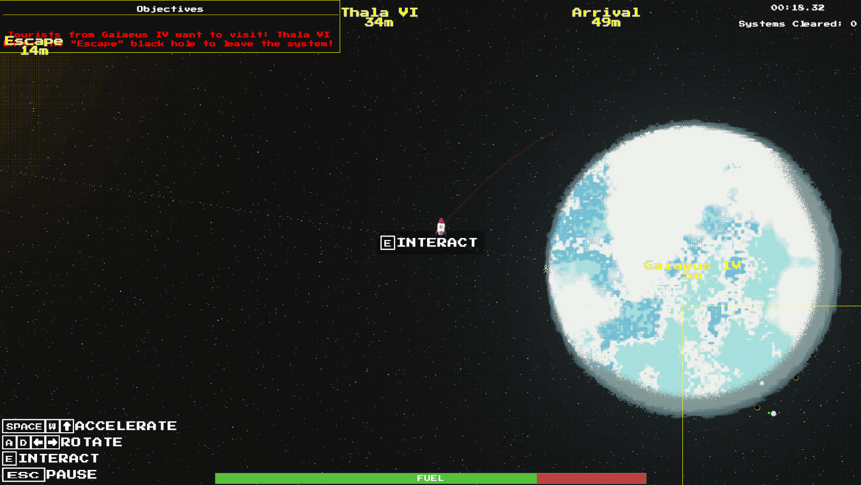 Use gravity assists and tight maneuvers to conserve fuel and optimize your trajectory. Completing objectives earn you points, use them to invest into upgrading your ship’s capabilities.
